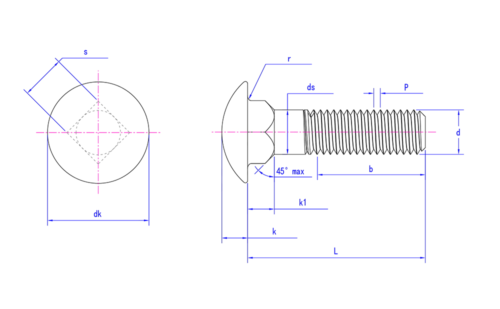 | Kafa Özellikleri | Yarı dairesel kafa, kare boyun, dönmeyi önleyen tasarım |