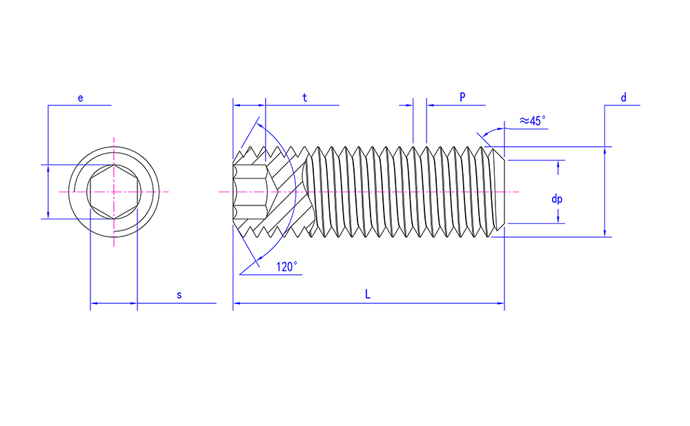 DIN 913 Paslanmaz Çelik Altıgen Soket Ayar Vidaları Düz Uçlu