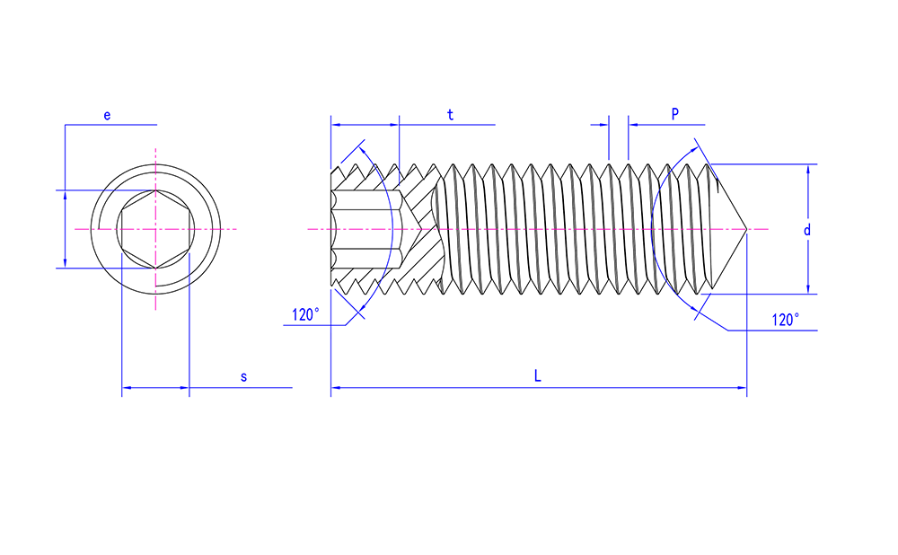 DIN914 Paslanmaz Çelik Altıgen Soket Seti Vidaları Koni Noktalı